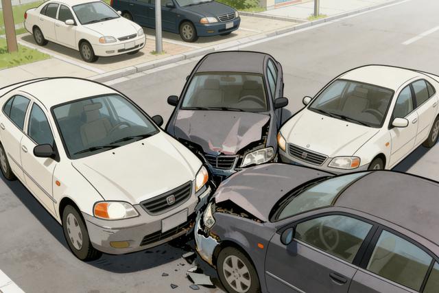 某日,小孙驾驶着父亲孙大爷名下的汽车出门,行驶到一处路段时,突然与前方不按规定停放的李某的机动车撞了个正着。巨大的冲击力让李某的车失去控制,又接连撞上了停在非机动车道内的老周和老王的汽车。