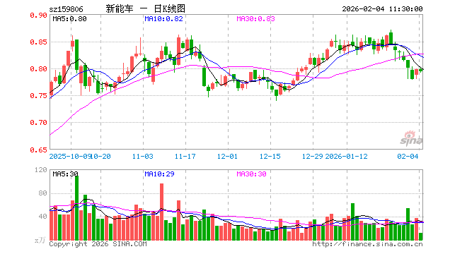 2月4日,截止午间收盘,新能源车ETF(159806)跌0.50%,报0.794元,成交额928.94万元。新能源车ETF(159806)重仓股方面,比亚迪截止午盘涨0.73%,宁德时代涨1.58%,汇川技术跌1.11%,三花智控跌1.49%,华友钴业涨1.65%,亿纬锂能跌1.24%,赣锋锂业跌2.36%,天赐材料跌2.35%,长安汽车涨0.63%,天齐锂业跌2.02%。