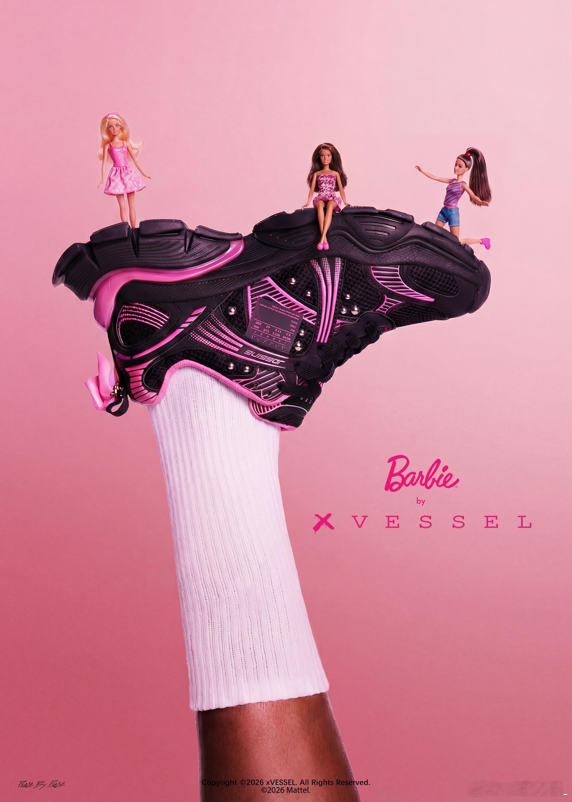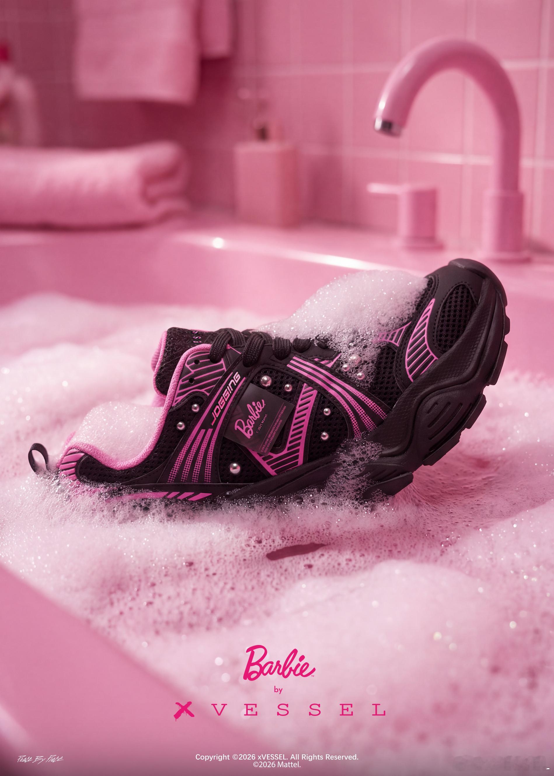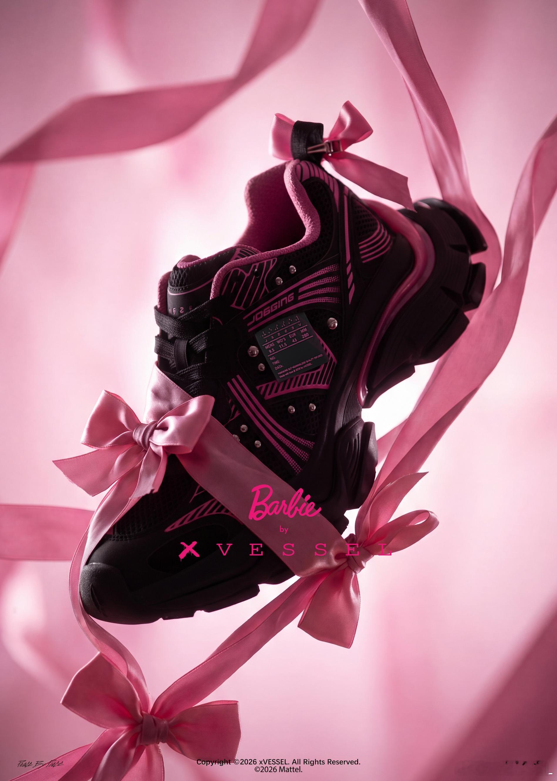 一次碰撞,一场蔓延当芭比梦幻哲学遇见xVESSEL街头态度,便激发了奇妙的涟漪效应黑与粉,是“做自己”与“拥抱你”这两道命题的和谐共生鞋侧荡开的每一道涟漪,都像心动蔓延的轨迹鞋身细节恰如爱情本身,既有铆钉般的坚定瞬间,也有蝴蝶结般的柔软心意
