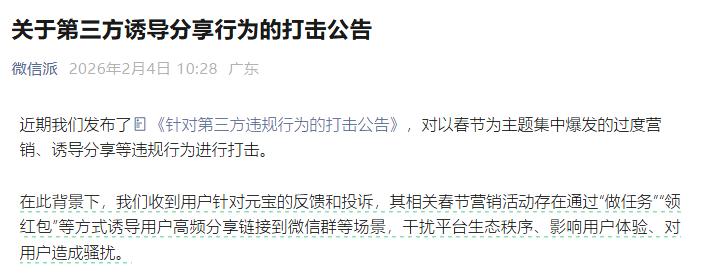 微信屏蔽腾讯自家产品“元宝”的红包链接,表面看是一次“大义灭亲”,实则深刻揭示了