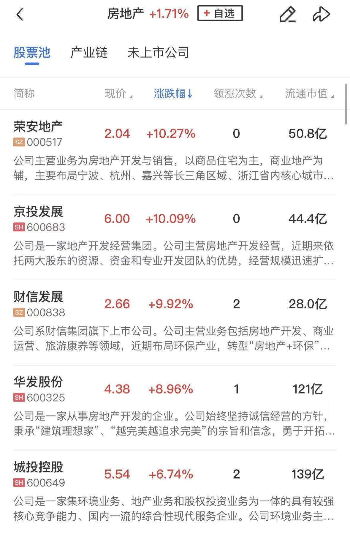 房地产板块同样表现活跃,荣安地产、财信发展、京投发展涨停,华发股份、城投控股、我爱我家、招商蛇口等个股涨幅居前。