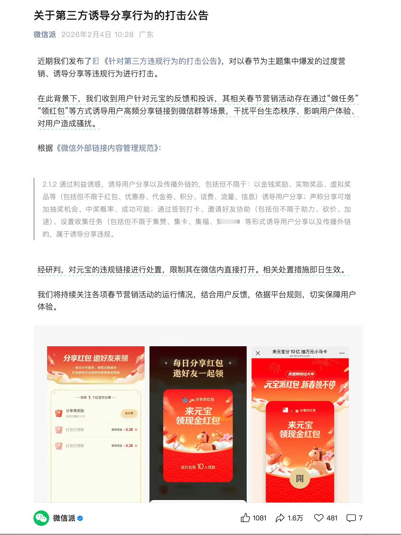 微信屏蔽元宝红包链接腾讯狠起来是真狠,第一波刚赚了5.22元早餐,就不给分享链接