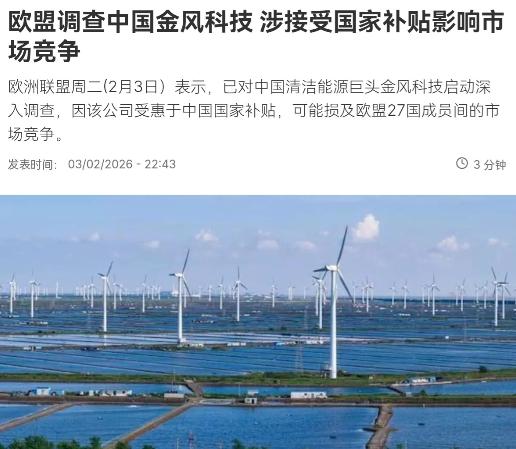欧盟又对我们的企业出手了!2月4日,根据法新社报道,欧盟宣布,已对中国清洁能源巨头金风科技启动深入调查。欧盟声称因该公司受惠于中国国家补贴,可能损及欧盟27国成员间的市场竞争,调查基于初步审查。而审查结果发现这家风力发电设备制造商"可能获得扭曲境内市场竞争的外国补贴",从而"提升其竞争地位"。 这事儿得从欧盟去年新出台的“外国补贴条例”说起——这套规则专门针对非欧盟国家政府对企业的补贴行为,一旦企业被认定获得“扭曲性补贴”,就可能面临反补贴税、市场禁入等处罚。 金风科技这次被盯上,核心症结在“补贴”二字。欧盟初步审查发现,该公司可能接受了中国政府提供的各类补贴,比如税收优惠、低成本贷款、研发资金支持等,这些补贴让金风科技在欧盟市场的报价更具竞争力,甚至能以低于成本的价格中标项目。 欧盟内部企业早就不满,比如丹麦的维斯塔斯、德国的西门子歌美飒,这些欧洲老牌风电巨头去年就开始抱怨“中国对手抢了订单”,现在欧盟委员会算是“顺应民意”出手了。 但这里有个关键点:欧盟的“补贴”定义和中国的“产业支持”存在认知差异。中国对新能源企业的扶持政策,比如风电设备国产化补贴、可再生能源电价附加补贴,本质上是推动绿色转型的战略投资,属于符合WTO规则的“可诉补贴”。 而欧盟现在把这类政策一概归为“扭曲性补贴”,显然是扩大了打击范围。金风科技作为全球风电装机量第二、海上风电第一的企业,2023年海外营收占比超30%,欧盟市场又是其重要增长点,这次调查如果坐实,不仅可能影响金风在欧业务,还会波及整个中国风电产业链。 欧盟这步棋背后藏着双重算盘。表面看是维护“公平竞争”,实则是在新能源领域筑起贸易壁垒。当前欧盟正面临能源转型压力,既想降低对俄罗斯能源的依赖,又想扶持本土清洁能源产业,但欧洲企业成本高、效率低,根本拼不过中国同行。 比如金风科技的风机成本比欧洲同行低15%-20%,交付周期还短一半,欧盟企业根本没法比。现在借“补贴调查”给中国企业使绊子,既能保护本土企业,又能逼中国在贸易谈判中让步。 这事儿对金风科技来说压力不小。按照欧盟调查流程,接下来要经历“深入调查阶段”,欧盟会派调查组到企业核查账目、访谈高管,甚至突击检查工厂。 如果最终认定存在“不当补贴”,欧盟可能要求金风退还补贴、缴纳罚款,或者限制其在欧投标资格。更麻烦的是,欧盟这波操作可能引发连锁反应——其他国家比如美国、澳大利亚可能跟进调查,金风在全球市场的布局都会受影响。 不过中国企业的应对经验已经越来越丰富。金风科技早就在欧洲做了布局,比如收购德国Vensys公司掌握直驱永磁技术,在英国、丹麦设立研发中心,还和当地企业合资建厂。 这些“本土化”操作既能降低“补贴”嫌疑,又能提升在欧市场认可度。中国商务部也多次表态,反对滥用贸易救济措施,支持企业通过世贸组织争端解决机制维护权益。 现在最值得关注的是调查结果和后续影响。如果欧盟最终认定金风科技存在“不当补贴”,不仅会改变欧洲风电市场竞争格局,还可能影响全球清洁能源产业链。 毕竟中国风电设备占全球市场份额超60%,欧盟这波操作可能推高欧洲新能源项目成本,延缓其能源转型进度。而如果金风科技成功应对调查,反而能证明中国企业的合规经营能力,为其他中国清洁能源企业“走出去”提供范例。 说到底,这次调查不是简单的贸易摩擦,而是全球新能源竞争白热化的缩影。欧盟想通过规则制定权维护自身产业利益,中国则要通过技术创新和合规经营突破壁垒。金风科技这次能不能扛住压力,不仅关系到企业自身发展,更关系到中国清洁能源产业在全球的地位。现在就看欧盟调查组怎么查,金风科技怎么应,以及双方最终怎么谈了。