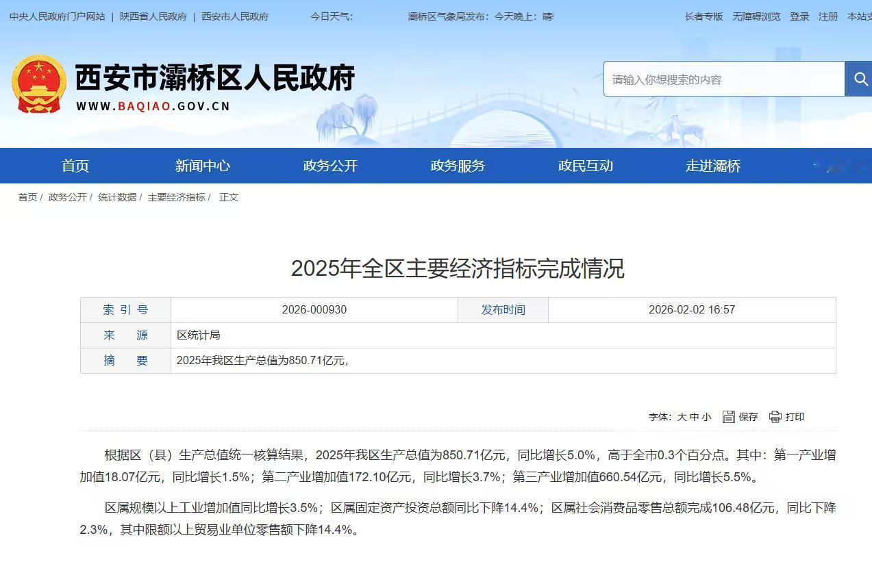西安新城区和灞桥区公布了2025年GDP完成情况。 新城区834.79亿元,较2024年801.12亿元,增量为30多亿,同比增长5.6%。 灞桥区850.71亿元,较2024年809.21亿元,增量为40多亿元,同比增长5.0%。 以上同比增速按不变价格计算,看总量新城,灞桥互换位置,灞桥排位上升。数据来源于网络,仅供参考,2024年数据为未终核数据。 西安 西安GDP 西安生活 西安本地