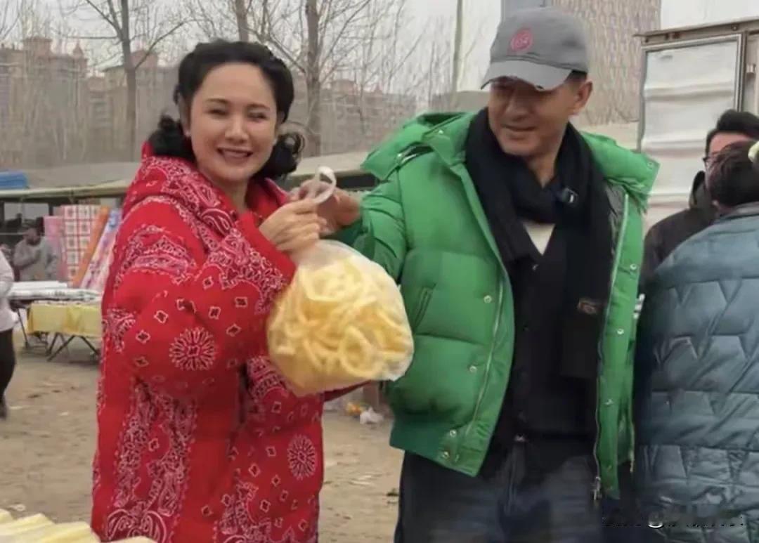 山东大集上最近有对“红配绿”明星夫妻,红的不是灯笼,是程莉莎的花棉袄,绿的也不是韭菜,是郭晓东的羽绒服。城里媳妇回村啃五块钱鸡腿,啃得满手油光让老公擦嘴,这场景比偶像剧实在。 有人说这是“作秀”,但秀了快二十年,也挺长情。当年程莉莎第一次回村,细高跟陷进泥里,被冻哭,看不懂女人不能上桌的规矩。如今她穿上往年的“村服”,能帮婆婆烧火,还能用带口音的山东话唠嗑。从“赫本回村”到“邻家大姐”,变的不是脸,是心态。 这对夫妻最狠的“秀”,可能是给村里修了17公里路、捐钱打井盖图书馆。婚姻的浪漫,有时不在鲜花钻戒,而在能把对方的根,也当成自己的家。 程莉莎郭晓东回山东过年 郭晓东