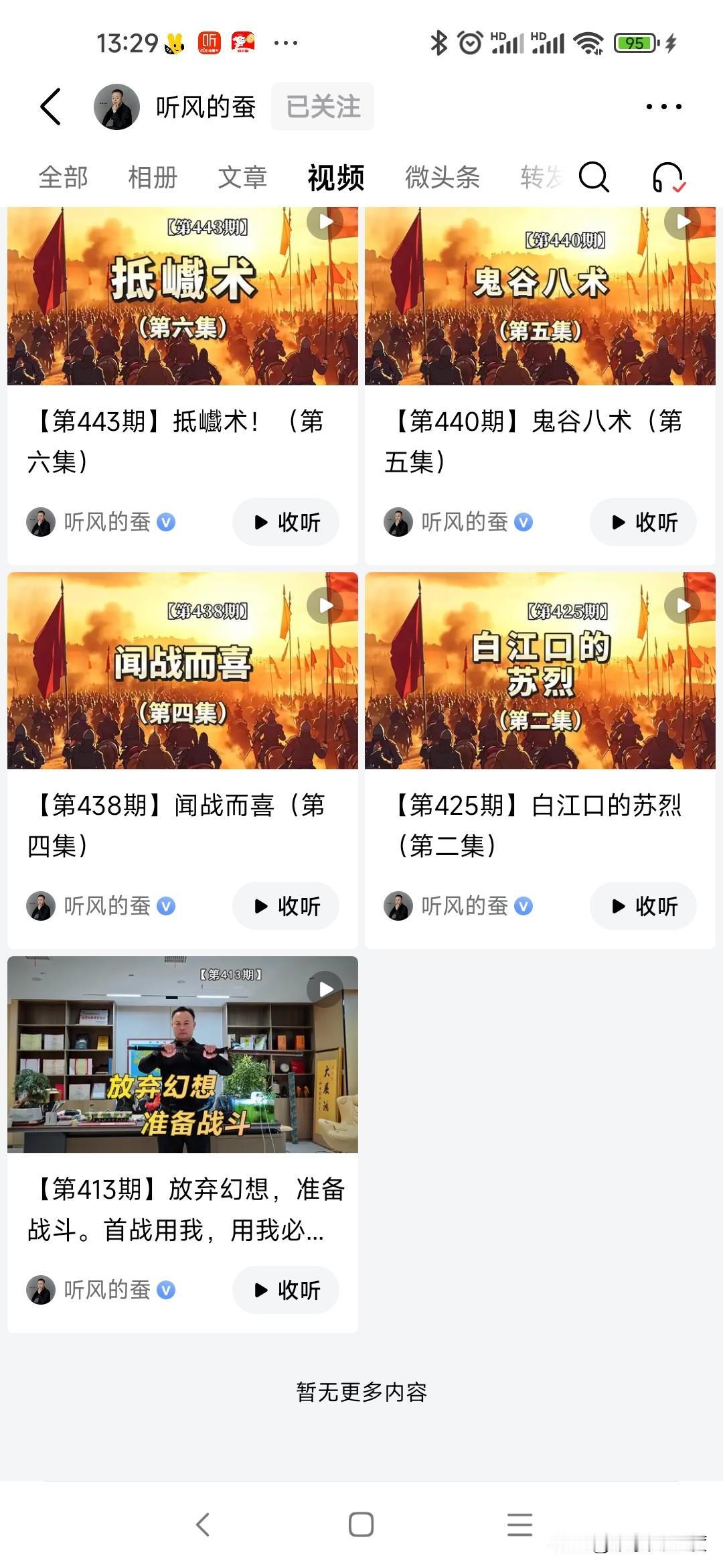 听风的蚕怎么回事? 以前非常爱听他的军事解读,了解了国内军力的实力,也给我树立了正确的价值观,世界观。 让我对自己国家的信心倍增,感觉他不愧是党员干部,参过军国家培养的人才。 之前有次听他的节目,感觉他言语有点偏,还想他怎会这么说话,后来就停播了,然后他出来解释调养身体。 后来听到刘仁轨,他后面彩蛋说一是继续调养身体,二是要清粉清一些假粉黑粉,但这也清的太多啦,怎么就剩100万粉丝? 荣幸的是我是这一百万之一! 最重要的是他以前的电子战和其他军事节目视频怎么都没啦?
