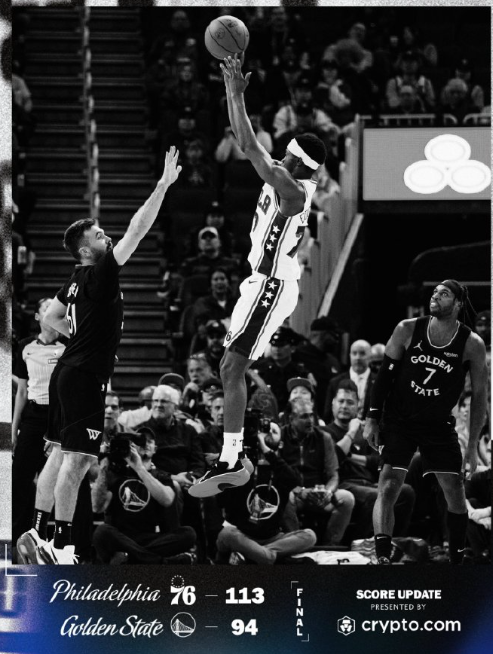 内线碾压!全场比赛结束:76人队背靠背客场113-94战胜勇士队,球队取得五连胜!埃奇库姆25分7篮板7助攻2抢断,马克西14分4篮板3助攻2抢断,德拉蒙德12分12篮板,乌布雷15分6篮板3助攻,博纳11分7篮板,巴洛10分6篮板,格兰姆斯10分5篮板3助攻,沃特福德16分8篮板3助攻!