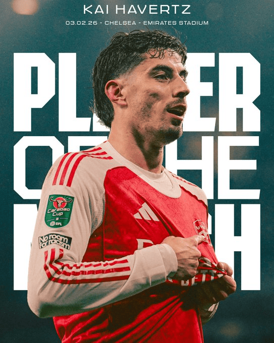 赛后本场替补出战破门制胜的哈弗茨当选阿森纳队内评选的本场比赛最佳球员。