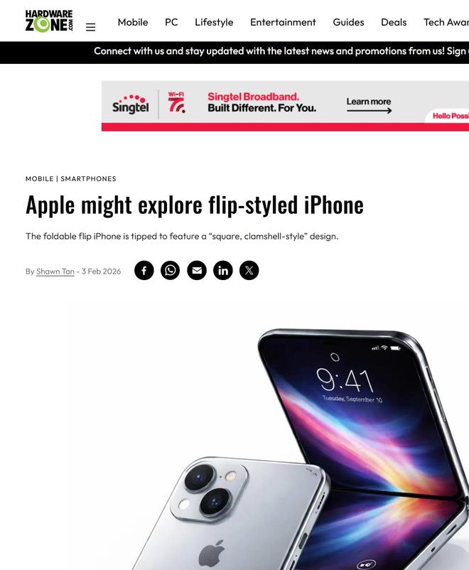 [环球网科技综合报道]2月4日消息,据hardwarezone援引彭博社报道称,苹果公司正在积极探索一款采用“方形翻盖式”设计的可折叠iPhone。这一动向表明,尽管市场普遍预期苹果将在2026年晚些时候率先推出书本式(横向对折)可折叠iPhone,但该公司并未排除同步开发翻盖式(竖向对折)机型的可能性。