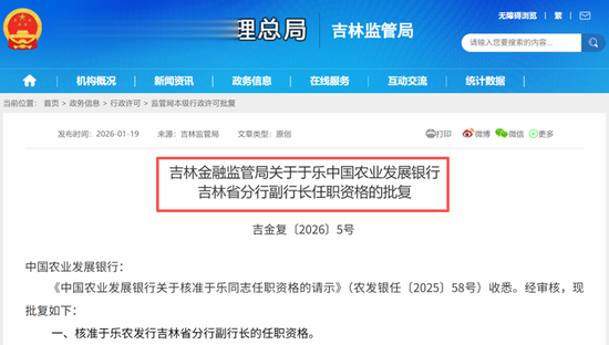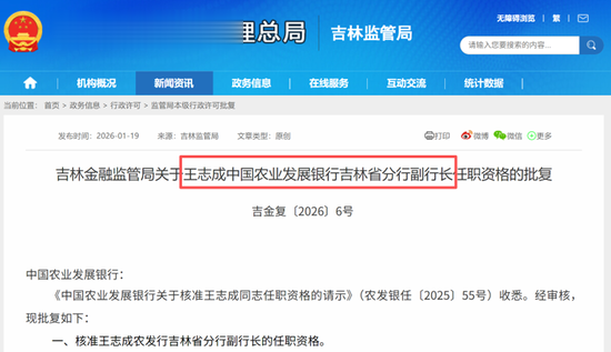 1月19日,王志成任吉林省分行副行长;曾任农发行辽宁省分行财务会计处处长,黑龙江省分行纪委书记。农发行原辽宁省分行副行长韩冰,已于2025年末调任黑龙江省分行纪委书记。