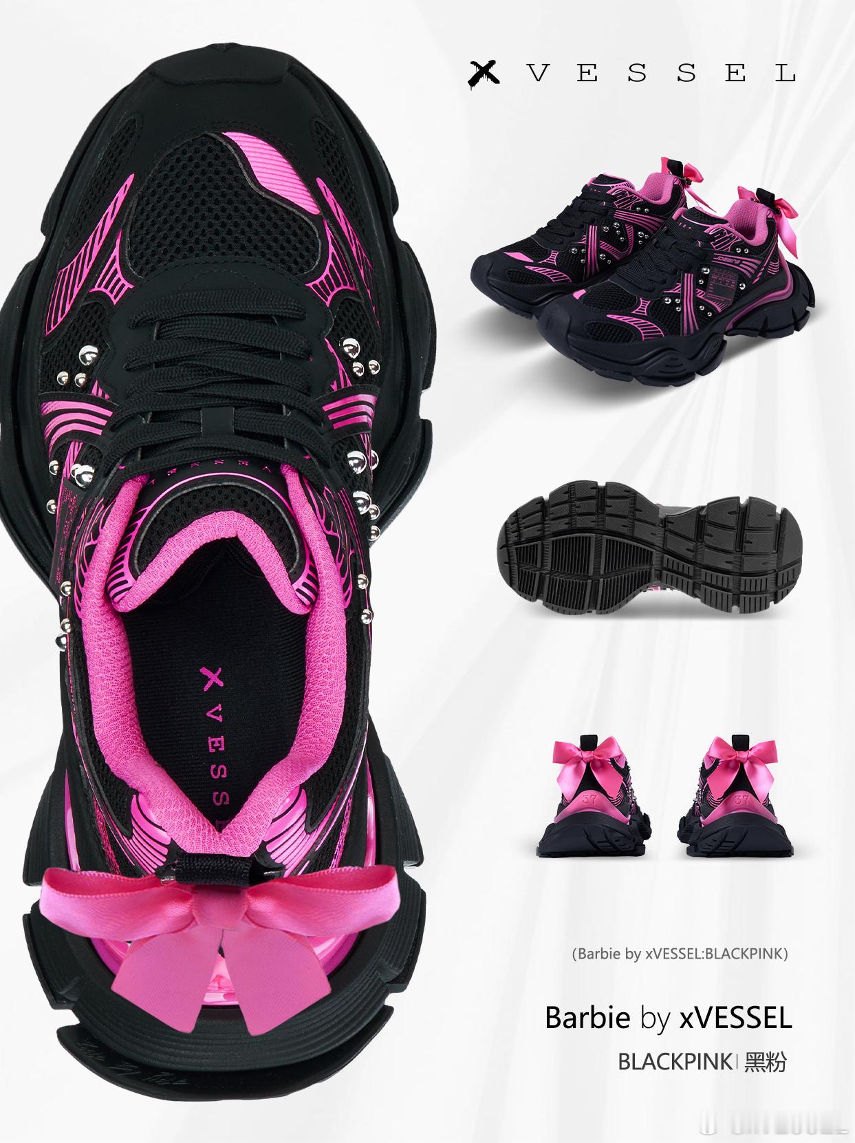 Barbie by xVESSEL 情人节限定「涟漪」即将发售❗️标志性黑粉配色,是梦幻与xVESSEL街头的共生宣言金属铆钉锚定坚定瞬间,可拆卸蝴蝶结赋予浪漫以呼吸感——爱是选择,也是自由七种纹路在鞋面相遇,演绎“各自鲜明,却意外合拍”的节日氛围2月6日12:00 pm,让精雕细琢的巧思,成为你走向Ta时,脚下荡开的涟漪