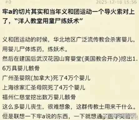 看了爱泼斯坦萝莉岛相关,我突然想起我们的历史书一直在说老祖宗,想起了初中历史课本上关于“义和团”的那个章节。老师站在讲台上,指着黑板上的“扶清灭洋”四个字,说这些老农民愚昧啊,信什么神功护体,最荒唐的是到处造谣,说洋人传教士在教堂里挖小孩心肝、炼丹药。那时候坐在底下的我,和大多数同学一样,觉得这简直是封建迷信的巅峰,洋人虽然坏,但人家是现代文明,哪里会人吃人?
