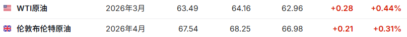 3.截至发稿,WTI原油涨0.44%,报63.49美元/桶。布伦特原油涨0.31%,报67.54美元/桶。