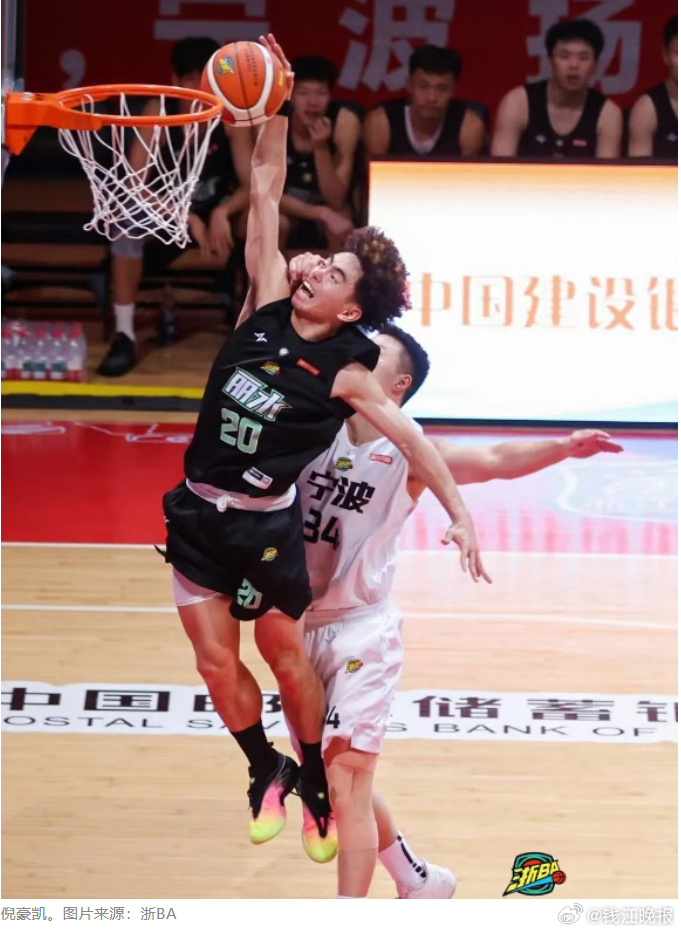 得分王倪豪凯(丽水队20号)总得分446分