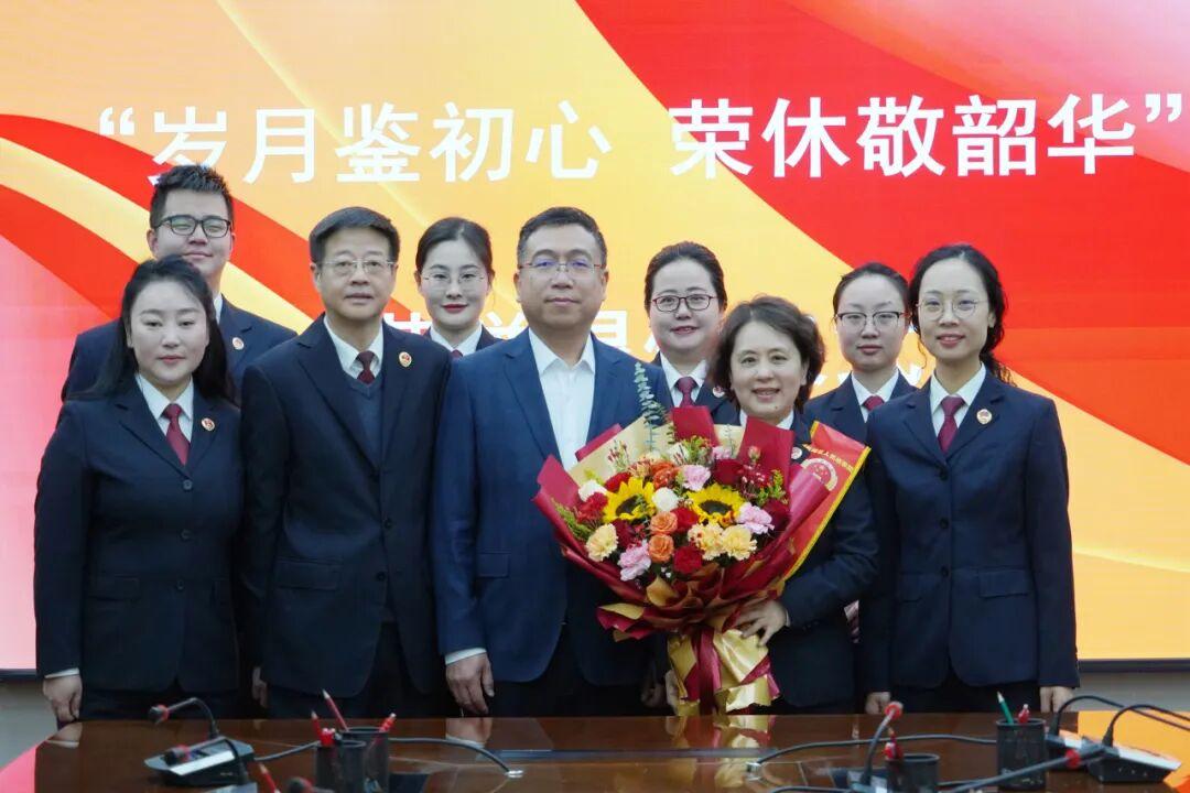荣光致谢,温情送别。1月30日上午,南昌市西湖区人民检察院为光荣退休的蒋泓同志举行了一场温馨而庄重的荣退仪式,以表达对老同志从检多年来无私奉献的崇高敬意。院党组书记、检察长李世峰出席活动并致辞,院党组副书记、分管日常工作的副检察长钟巍、院党组成员、检委会专职委员谢丹丽、院党组成员、政治部主任李琼、离退休党支部代表及第二检察部全体干警参加活动。