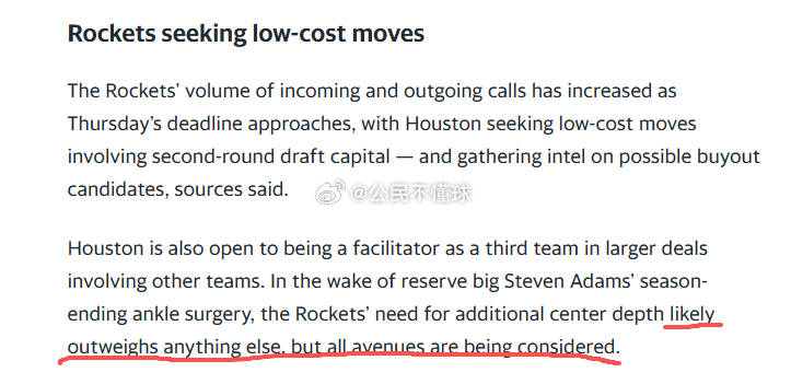 因为大家平时都看微博,虎扑,直播吧之类的渠道了解信息,很多东西都是失真的,只言片语的,或者干脆就是老外随便说两句,大家就喜欢热烈讨论。其实流言这东西还得去找原文,所以我去推上翻了一下跟火箭有关的消息来源,整理如下:
