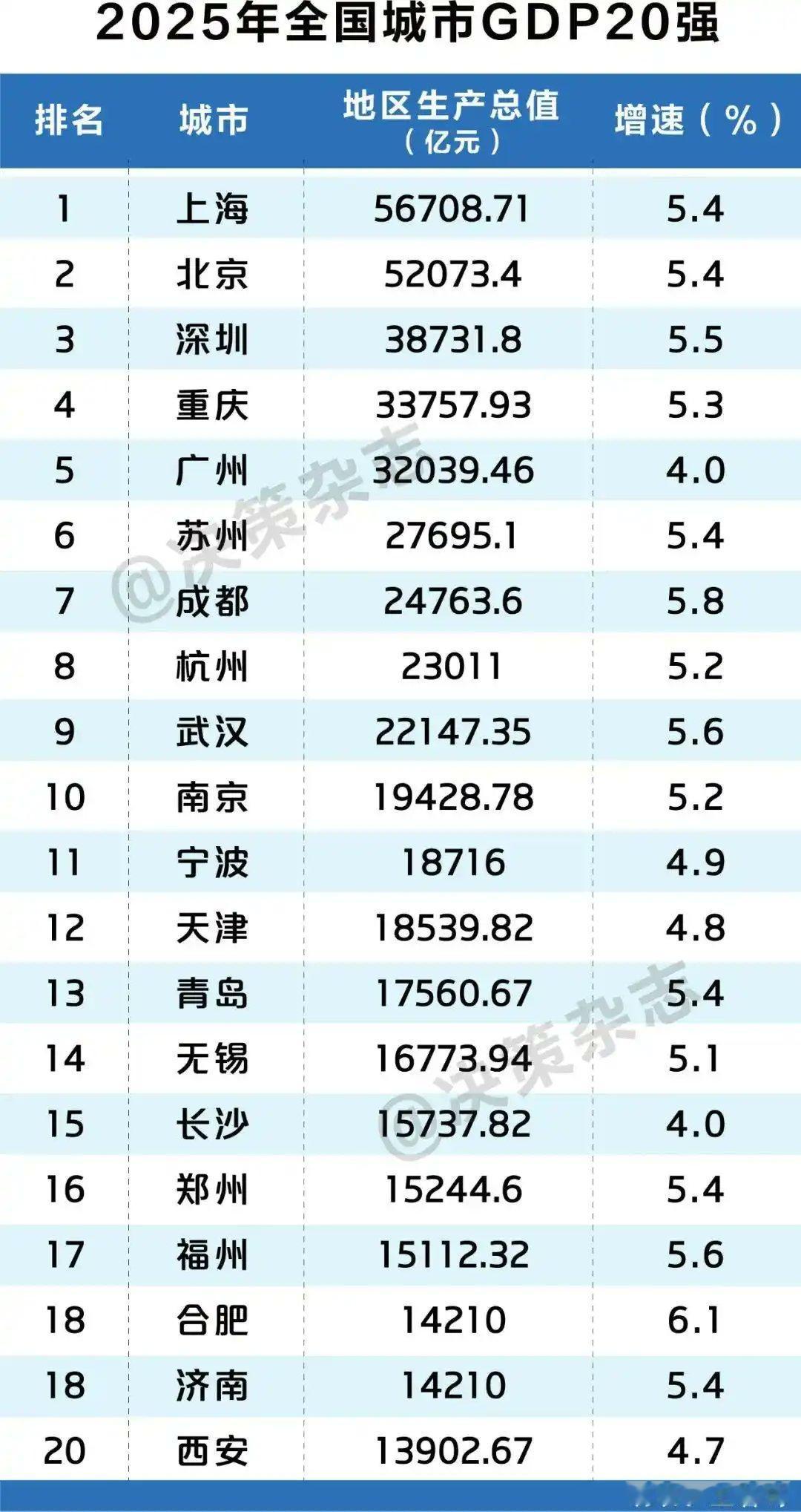 2025年,我国万亿GDP城增至29座,大连终结东北“零万亿”! 近日中国城市GDP20强正式出炉,上海、北京均达到5万亿。深圳、重庆、广州达到3万亿。 内地的万亿GDP城市增至29座,今年新进的城市有温州和大连。 大连GDP达到10002.1亿元,终结了东北地区长期无万亿城市的历史。