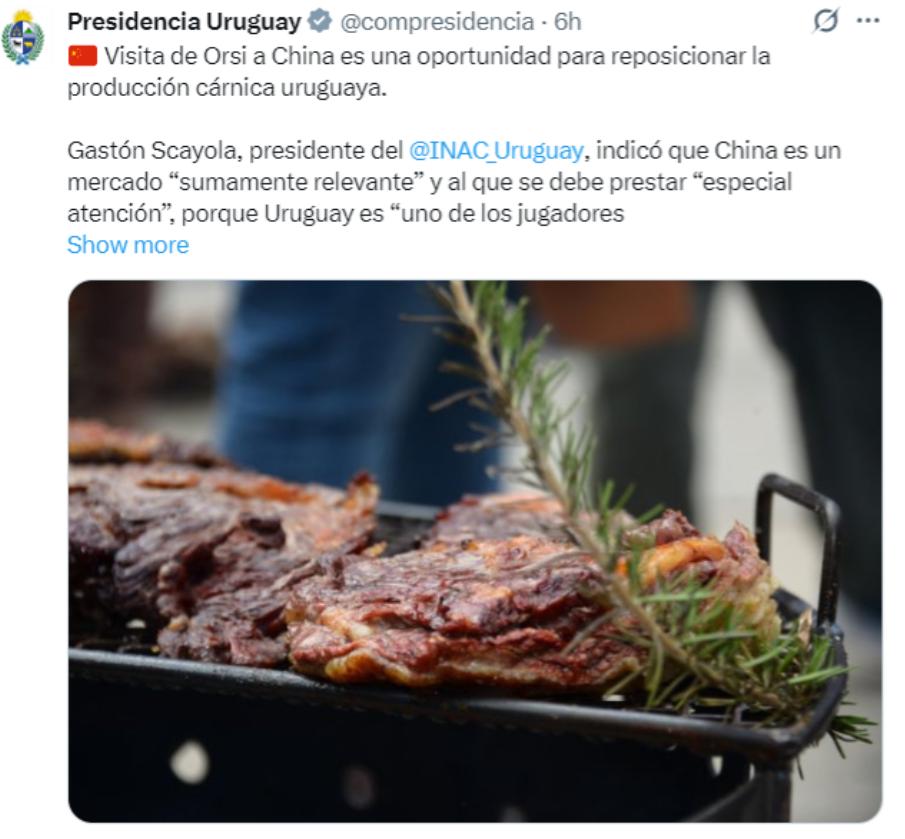 2 月 3 日,乌拉圭总统奥尔西在访华的第 3 天,在社交媒体上发表了一篇小作文,他说:“我来中国之前,我们国家农业与食品研究院院长专门对我说,中国是一个非常关键的市场,必须给予‘特别重视’,因为乌拉圭已成为中国牛肉进口市场中的重要参与者。” 他还说:我访华有一个重要目标,就是给乌拉圭牛肉产业重新定位。 可能很多人看到这句话会好奇,一个南美小国为什么这么看重中国市场?乌拉圭的牛肉到底凭什么能在中国站稳脚跟?其实只要看看一组数据就明白,这个 “牛比人多” 的国家,早就和中国餐桌绑在了一起。 乌拉圭 350 万人口养着近 1300 万头牛,平均每个人拥有 3.7 头牛,80% 的国土都是天然草场,这样的自然条件让牛肉成为了他们的经济支柱,而中国恰恰是这个支柱最关键的支撑。 2025 年乌拉圭对华牛肉出口量达到 92 万吨,占其牛肉出口总量的 48%,连续 6 年稳居中国牛肉进口来源地前三,光去年前 10 个月的出口额就达到 21.84 亿美元,同比增长 33%,这样的增速难怪会让他们的院长特意叮嘱总统要 “特别重视”。 尤其值得关注的是,奥尔西提到的 “重新定位” 并不是一句空话,背后藏着乌拉圭应对全球竞争的深层考量。 这些年乌拉圭牛肉面临着不小的压力,巴西牛肉以低于 10% 的价格抢占中东市场,让他们的初级牛肉出口下滑了 9%,而欧盟还要在 2027 年把碳关税延伸到农产品,一旦实施,乌拉圭每年可能要损失超 6.7 亿美元。 在这样的背景下,中国市场的重要性就更加凸显,毕竟 2025 年中乌双边贸易额已经达到 682 亿美元,农产品贸易占比超 60%,还实现了 18 亿美元的顺差,形成了 “中国需要什么,乌拉圭就供给什么” 的稳定格局。 为了抓住这个关键市场,乌拉圭早在 2025 年 11 月就推出了关税新政,专门针对牛肉产业搞 “精深化” 改革,把未获溯源认证的初级冻牛肉出口关税从 5% 上调到 15%,反而把牛肉干、高端冷鲜分割肉等深加工产品的关税从 8% 降到 3%,就是想从单纯卖原料转向卖高附加值产品。 不过要实现这样的重新定位,离不开中国市场的配合与支持,而这次奥尔西访华确实带来了实打实的突破。 他率领 70 多家企业代表,一口气签署了 30 多项协议,其中农业领域的合作升级最让人关注。 双方修订了《中乌农产品输华议定书》,试点乌拉圭冷冻牛肉 “即报即检 + 智能通关”,预计清关时效能缩短 40%,再加上之前已经开通的蒙得维的亚港 “生鲜绿色通道”,现在乌拉圭牛肉从港口到中国消费者餐桌的时间大大缩短,冷鲜牛肉的损耗率也从 12% 降到了 5%。 更让人惊喜的是,中国首次开放了乌拉圭优质草饲羔羊肉的进口配额,首批 500 吨已经获批,3 月份就能登陆国内商超,价格比同等品质的澳洲羔羊肉低 15%-20%,对消费者来说无疑是个好消息。 很多人可能会问,中国牛肉进口来源那么多,为什么偏偏乌拉圭能持续领跑?这背后其实是两国多年积累的信任和高度互补的需求。 乌拉圭早在 2006 年就搭建起全球领先的牛肉溯源体系,每一头牛都配有专属的电子信息牌,从出生、饲养到屠宰、加工全程可查,而且养殖过程中不添加任何激素与生长素,完全符合中国的检验检疫要求,这也是中国海关总署 2023 年专门发布公告允许其多种牛肉副产品进口的重要原因。 从乌拉圭的角度来说,中国作为全球最大的牛肉进口国,不仅能消化他们大量的产出,还能接受更高品质、更高附加值的产品,这正好契合他们 “重新定位” 的需求。 就像这次他们对进口智能分割设备实施零关税,还为潘帕斯草原产业集群提供有机认证成本 30% 的补贴,都是为了能生产出更符合中国市场需求的高端产品。 而且这种合作并不是单方面的受益,而是真正的互利共赢。 中国消费者能吃到更优质、更多元的肉类产品,乌拉圭则通过深耕中国市场实现了贸易结构的优化,2025 年关税新政实施首月,他们的牛肉深加工产品对华出口就增长了 33%。 更重要的是,两国的合作已经超出了单纯的买卖关系,延伸到了产业链的各个环节。 除了牛肉,乌拉圭的大豆、羊毛也大量出口到中国,其中获 “乌拉圭细羊毛” 地理标志认证的产品对华出口已经突破 1.2 亿美元,而中国则为乌拉圭提供了稳定的市场需求和发展机遇,帮助他们抵御了国际市场的波动和竞争压力。 奥尔西总统在访前专访中就曾强调:“乌拉圭作为世界优质食品供应国,向中国供应大量优质粮食和牛肉。” 这句话既体现了他们的自信,也道出了两国合作的核心逻辑。