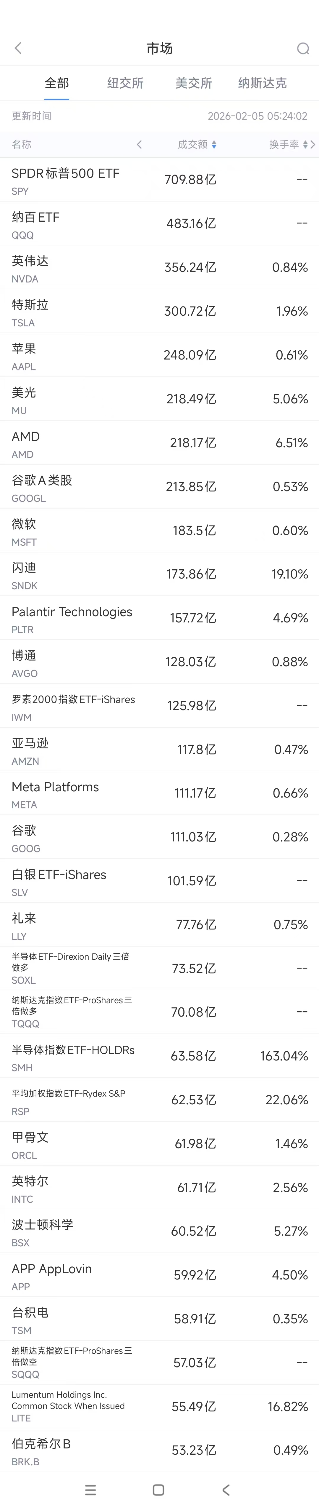 周三美股成交额第5名AMD收跌17.31%,创2017年以来的最大单日跌幅,成交218.17亿美元。该公司于周二公布了第四季度财报,业绩超出华尔街预期,但部分分析师认为其未来前景偏弱,导致利好被市场忽视。公司CEO苏姿丰(LisaSu)为其公司疲弱的业绩展望进行了辩护。她表示,尽管公司股价暴跌17%,创下自2017年5月以来最糟糕的单日表现,但这家芯片制造商近几个月来已看到需求明显回升。