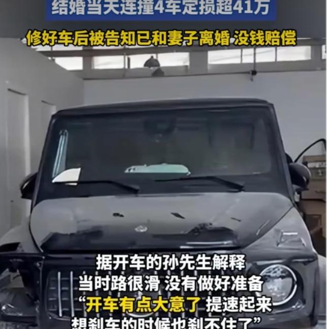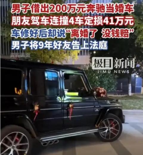 9年兄弟情,抵不过41万修车费?借车当婚车撞毁豪车,一句“离婚没钱”寒透人心 谁能想到,一场本该喜气洋洋的婚礼,竟成了9年友情的“葬礼”。河南朱先生把刚买半年、价值200万的奔驰大G,借给相识9年的好友孙先生当婚车,本是成人之美的仗义之举,却在婚礼当天遭遇晴天霹雳——孙先生驾车时因雨天路滑、操作不当,连撞路边4辆车,定损金额高达41.3万元,交警认定孙先生负全责。 更让人心寒的是,朱先生念及多年情谊,主动妥协同意用拆车件维修,硬生生把费用砍了一半,只求好聚好散。可车修好后,孙先生却玩起了“消失”,不仅迟迟不结账取车,还轻飘飘丢下一句:“我跟媳妇离婚了,没钱。”更可疑的是,朱先生发现孙先生名下的坦克500早已过户到前妻名下,明眼人都能看出,这是想借“假离婚”逃避债务。 从推心置腹的兄弟,到对簿公堂的仇人,不过短短数月。有人说朱先生太较真,不就是41万,至于毁了9年情分?可谁又懂他的委屈:那是他刚买的新车,还没捂热就成了事故车,贬值损失谁来赔?他的仗义让步,换来的却是对方的算计和推诿,换作谁,能不寒心? 这起闹剧戳破了成年人友情的“遮羞布”:真正的兄弟情,从来不是靠“借车”“帮忙”来证明,而是遇事时的担当与坦诚。那些一遇到麻烦就推卸责任、拿感情当挡箭牌的人,从来都不是真朋友。 借车有风险,识人更要擦亮眼睛。别让你的善意,成为别人伤害你的利器;也别让所谓的“情分”,纵容了他人的自私与无赖。你身边有这样“借钱借车不还”的朋友吗?遇到这种事,你会选择忍气吞声还是坚决维权?评论区说说你的看法!#河南婚车车祸##奇葩借车经历