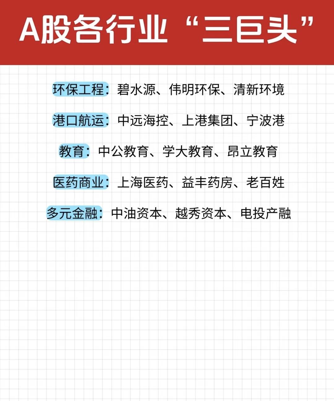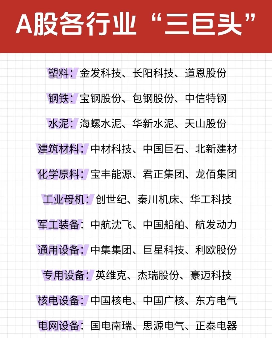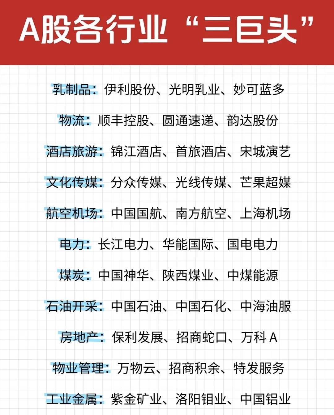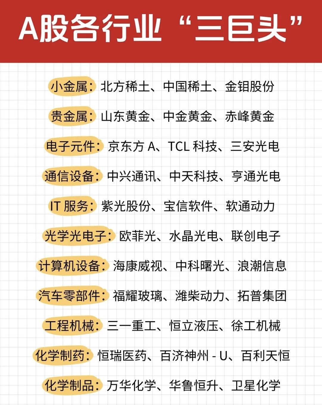 🔥A股各行业三巨头全梳理!覆盖新能源、消费、金融、制造等核心赛道精准锁定核心赛