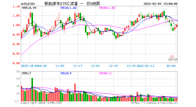 2月4日,新能源车ETF汇添富(516390)涨1.31%,成交额591.42万元。当日份额减少150.00万份,最新份额为2.31亿份,近20个交易日份额减少1800.00万份。最新资产净值计算值为2.31亿元。