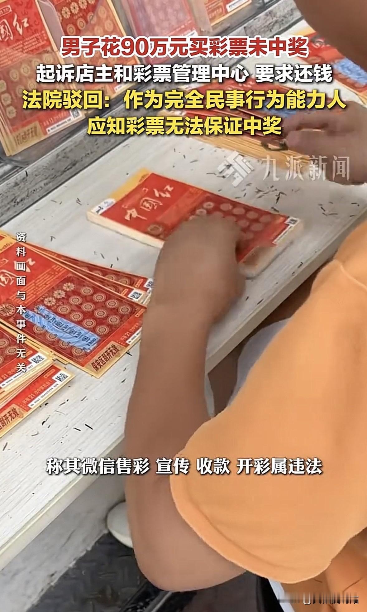“离了大谱!”安徽合肥,男子一个月的时间豪掷90万买彩票,却一分没中,他心态崩了,反手就把彩票店老板和彩票管理中心给告了,说店主天天发别人的中奖消息诱导他买彩票,这合同无效,必须全额退他90万。结局让人笑掉大牙! 这是一场价值高达90万元的魔术,道具很简单:一部手机,加上一堆最后变成废纸的彩票。 故事要从2023年9月说起,地点是安徽合肥,资深彩民何某某坐在自家沙发上,手指在手机屏幕上飞快地点击,正进行着一场足以让普通人心跳骤停的“豪赌”。 在短短一个月的时间里,90万元真金白银,通过微信转账的方式流了出去,换回来的只有几十斤沉甸甸的没中奖彩票存根。 当账户里的余额变成了零,那种因赌博产生的肾上腺素也随之退去,取而代之的是巨大的恐慌和不甘。 何某某没有选择认栽,而是试图在法律条文中寻找“后悔药”,他一纸诉状,把彩票店老板张某连同彩票管理中心,一起告上了法庭,目的非常直接:把那输掉的90万,连本带利给我吐出来。 这事儿听起来确实有点新鲜,在咱们老百姓的认知里,买彩票愿赌服输是天经地义的,怎么输了钱还能找庄家退款?何某某敢这么干,是因为他觉得自个儿抓住了两个“漏洞”。 他的第一个理由是“诱导消费”,何某某指责店主张某,天天在朋友圈里晒别人中了大奖的截图和视频,这在他看来就是一种心理暗示和蛊惑,利用信息差刺激他不断追加投注,让他欲罢不能。 第二个理由则更加刁钻,他搬出了“互联网禁售令”,既然国家明令禁止通过互联网销售彩票,那我和店主这一个月全靠微信转账、拍照回传的方式交易,不就是违规操作吗? 既然违规,那咱们的合同就该是无效的,钱自然得退回来,乍一听,这逻辑似乎还挺严密,但在法庭上,讲的不是谁嗓门大或者谁更惨,而是看谁的证据链,更经得起推敲。 法官先把目光聚焦在了交易的本质上,虽然何某某本人确实没有踏进彩票店半步,全程都是隔空指挥,但店主张某的操作流程却非常传统:收到微信转账、在店里的实体终端机上打出彩票、然后拍照发给何某某确认。 这在法律定性上可是有着天壤之别,如果是你在某个APP上下单,后台只是虚拟生成一串号码,那叫“非法网售”。 但资金进入的是正规代销账户,票是从正规机器里吐出来的实体票,这就叫“委托代购”。 微信在这里只是一个沟通和支付的工具,并不是违规的销售平台,法官这一判定,直接把何某某索赔的一半地基给拆了。 而真正让何某某彻底绝望的,是店主张某出于职业敏感,做的一个防御性动作。 面对一个月90万这种疯狂的流水,张某并没有被提成冲昏头脑,反而心里直打鼓。 他做了一件教科书级别的风控措施——给何某某发了一个官方的“大额购彩风险告知书”二维码,并且千叮咛万嘱咐让他务必填好。 当时的何某某早就杀红了眼,哪里顾得上细看,毫不犹豫地扫码、填单、签字,只想赶紧走完流程好继续下注。 但他万万没想到,正是这个不起眼的扫码签字动作,亲手堵死了自己的退路,这在法律上形成了一个无懈可击的闭环。 你是一个完全民事行为能力人,你亲笔签署了风险告知书,说明你对“彩票有风险,投注需谨慎”是心知肚明的。 所谓的“诱导消费”指控,在这一纸签名面前瞬间崩塌,朋友圈的中奖宣传,被认定为正常的商业经营行为,而你作为一个成年人,在明确知晓风险且签署了告知书的情况下,依然选择豪掷千金,这就不叫被骗,这叫“自甘风险”。 法院最终的判决冷峻而清晰:驳回何某某的全部诉讼请求。 这起案件,其实给所有人都上了一堂生动的法理课,特别是关于“射幸合同”的概念,买彩票,买的从来不是“中奖”这个结果,而是“中奖的机会”。 只要店主真实打印并交付了彩票(哪怕是电子照片形式),这个机会就已经给付完毕,合同也就履行结束了。 那个试图钻法律空子的何某某,最终不仅输掉了90万本金,还得自己掏腰包支付诉讼费和律师费,成了街头巷尾的笑谈。 而对于那位惊魂未定的店主张某来说,虽然赢了官司,但这90万的流水,恐怕也让他手心冒汗,那张填了字的风险告知书,成了他职业生涯中,最值钱的一张“护身符”。 法律保护合法的财产权益,但绝不会保护一个输不起的赌徒,在这个充满诱惑和不确定性的世界里,成年人最大的体面,就是得学会为自己的欲望买单,而不是输了就掀桌子。