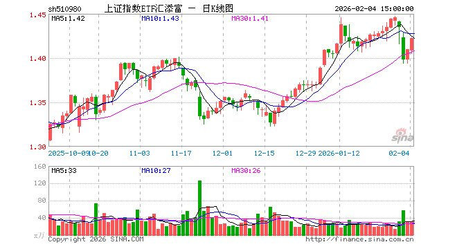 2月4日上证指数ETF汇添富(510980)份额减少1500.00万份,最新份额2.67亿份,最新规模3.80亿元