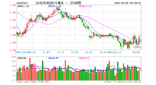2月5日,300红利低波ETF嘉实(515300)开盘涨0.15%,报1.297元。300红利低波ETF嘉实(515300)重仓股方面,中国神华开盘跌1.23%,格力电器跌0.33%,中国石油涨0.47%,中国石化涨0.15%,双汇发展涨0.11%,中国海油涨0.97%,大秦铁路跌0.20%,中国建筑涨0.19%,招商公路跌0.31%,美的集团涨0.03%。