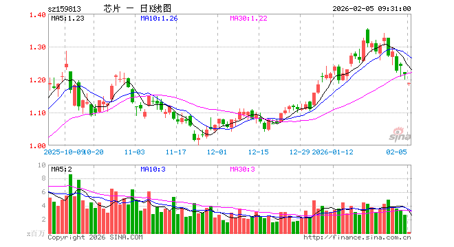 2月5日,半导体ETF(159813)开盘跌2.38%,报1.187元。半导体ETF(159813)重仓股方面,中芯国际开盘跌1.61%,海光信息跌2.11%,寒武纪跌1.68%,北方华创跌1.61%,兆易创新跌4.39%,中微公司跌2.64%,澜起科技跌5.28%,豪威集团跌0.69%,拓荆科技跌3.47%,长电科技跌2.16%。