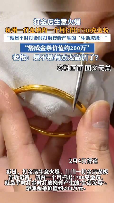 杭州打金店扫垃圾扫出近200万金粉!争议拉满 惊掉下巴!杭州一打金店近期火上热搜,店员从日常垃圾中扫出1700克金粉,熔炼后价值近200万(按2026年2月初金价1176元/克计算)。 据悉,金粉源自黄金加工时的自然损耗,但这一回收量直接引发全网质疑——行业常规损耗率仅0.1%-0.25%,单月1700克远超常理,网友纷纷猜测要么数据造假,要么店家暗藏“偷金”猫腻。 对此店家回应,近期金价暴涨,旧金改款、黄金定制订单暴增,海量订单叠加下,损耗总量自然大幅提升,并非违规操作。 一边是近200万的“垃圾财富”,一边是不合常规的损耗数据,网友吵翻:到底是订单爆单的巧合,还是另有隐情?评论区说说你的看法~