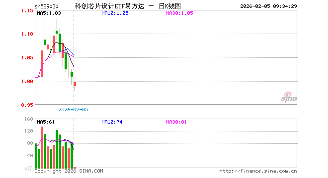 科创芯片设计ETF易方达(589030)业绩比较基准为上证科创板芯片设计主题指数收益率,管理人为易方达基金管理有限公司,基金经理为李栩,成立(2025-12-31)以来回报为0.80%,近一个月回报为0.80%。