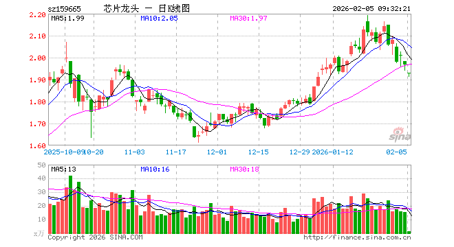 2月5日,半导体龙头ETF工银(159665)开盘跌1.78%,报1.931元。半导体龙头ETF工银(159665)重仓股方面,中芯国际开盘跌1.61%,海光信息跌2.11%,寒武纪跌1.68%,北方华创跌1.61%,兆易创新跌4.39%,中微公司跌2.64%,澜起科技跌5.28%,豪威集团跌0.69%,拓荆科技跌3.47%,长电科技跌2.16%。