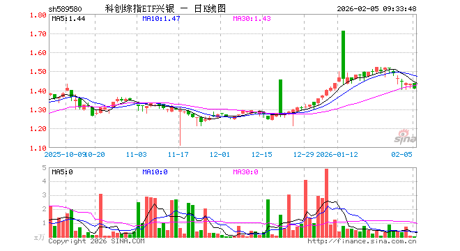 科创综指ETF兴银(589580)业绩比较基准为上证科创板综合价格指数收益率,管理人为兴银基金管理有限责任公司,基金经理为林学晨、李浩,成立(2025-05-27)以来回报为42.40%,近一个月回报为8.57%。