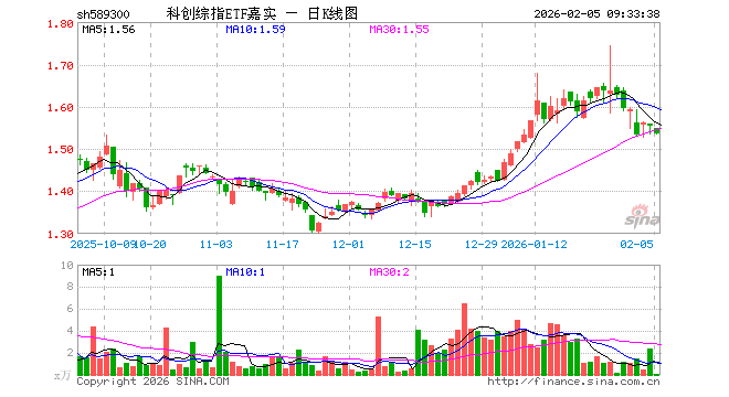 科创综指ETF嘉实(589300)业绩比较基准为上证科创板综合指数收益率,管理人为嘉实基金管理有限公司,基金经理为尚可,成立(2025-04-09)以来回报为55.31%,近一个月回报为9.04%。