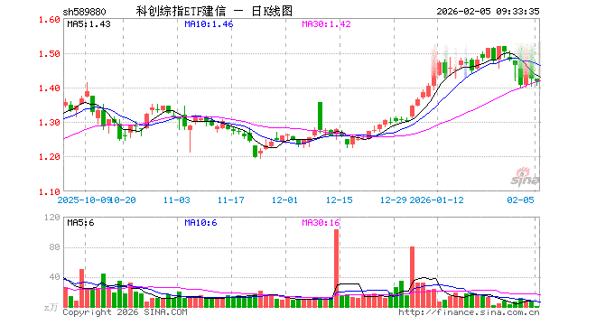 科创综指ETF建信(589880)业绩比较基准为上证科创板综合指数收益率,管理人为建信基金管理有限责任公司,基金经理为葛鲁禹,成立(2025-02-20)以来回报为42.06%,近一个月回报为9.03%。