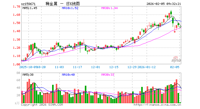 2月5日,稀有金属ETF工银(159671)开盘跌1.29%,报1.449元。稀有金属ETF工银(159671)重仓股方面,洛阳钼业开盘跌2.66%,北方稀土跌1.61%,华友钴业跌1.40%,盐湖股份跌1.78%,赣锋锂业跌3.20%,天齐锂业跌1.82%,中矿资源跌4.96%,厦门钨业跌1.52%,中国稀土跌1.31%,西部超导跌0.85%。