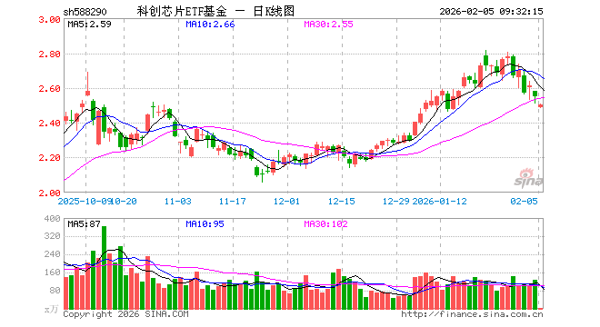 2月5日,科创芯片ETF基金(588290)开盘跌2.35%,报2.489元。科创芯片ETF基金(588290)重仓股方面,中芯国际开盘跌1.61%,海光信息跌2.11%,寒武纪跌1.68%,澜起科技跌5.28%,中微公司跌2.64%,拓荆科技跌3.47%,芯原股份跌4.04%,华虹公司跌2.18%,沪硅产业跌1.28%,东芯股份跌1.99%。