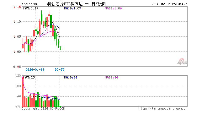 科创芯片ETF易方达(589130)业绩比较基准为上证科创板芯片指数收益率,管理人为易方达基金管理有限公司,基金经理为李栩,成立(2025-12-29)以来回报为2.79%,近一个月回报为2.88%。
