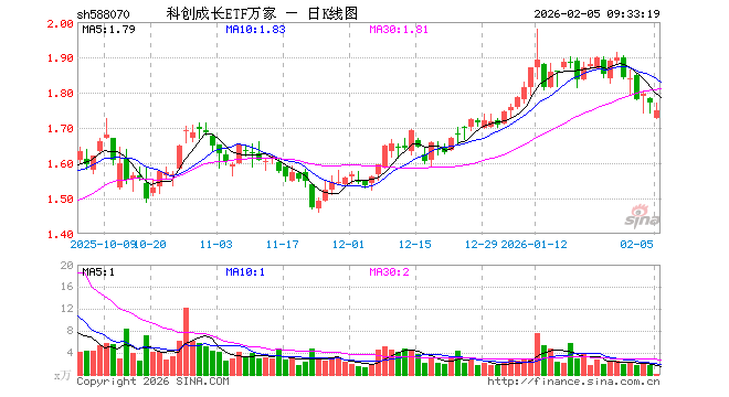 2月5日,科创成长ETF万家(588070)开盘跌2.32%,报1.728元。科创成长ETF万家(588070)重仓股方面,海光信息开盘跌2.11%,寒武纪跌1.68%,拓荆科技跌3.47%,源杰科技跌2.91%,九号公司涨0.00%,国盾量子跌1.32%,仕佳光子跌3.08%,百利天恒涨0.75%,思特威跌1.24%,铂力特跌2.19%。