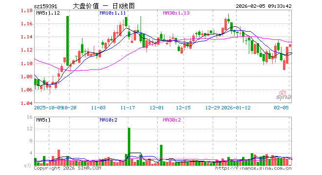 2月5日,大盘价值ETF博时(159391)开盘涨0.00%,报1.124元。大盘价值ETF博时(159391)重仓股方面,中国平安开盘跌0.34%,招商银行跌0.18%,美的集团涨0.03%,兴业银行涨0.10%,工商银行涨0.14%,农业银行涨0.00%,伊利股份涨0.33%,交通银行涨0.15%,格力电器跌0.33%,中国神华跌1.23%。