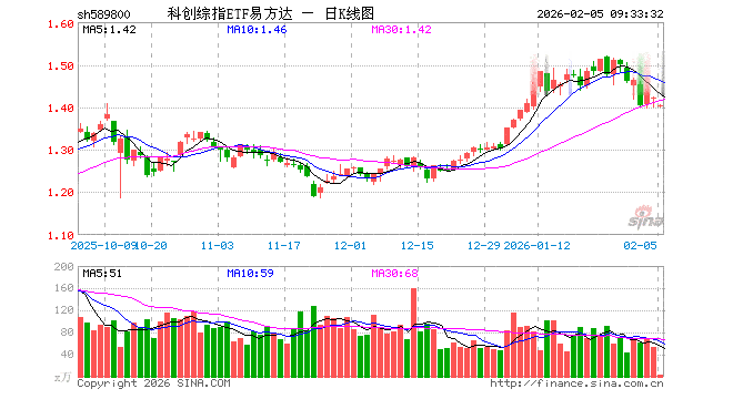 科创综指ETF易方达(589800)业绩比较基准为上证科创板综合指数收益率,管理人为易方达基金管理有限公司,基金经理为李博扬,成立(2025-02-25)以来回报为42.19%,近一个月回报为9.05%。