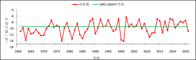 1月,全省平均气温-10.9℃,比常年同期偏低1.5℃,为2017年以来历史同期最低。上旬偏高0.8℃,中旬偏低2.0℃,下旬偏低4.0℃,为2019年以来历史同期最低。