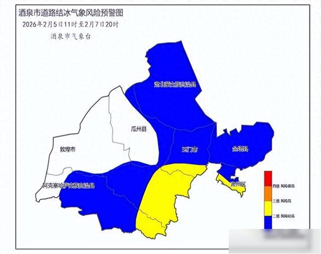 2026年2月5日11时至7日20时酒泉市道路结冰气象风险预警