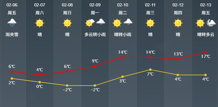 双休日绍兴雨雪停止转为晴冷天气,这两天气温不足6℃,早晚气温在冰点以下,有可能创出入冬以来新低,体感也是从早冷到晚,请务必注意防寒保暖。此轮寒潮过后,下周初本市气温逐渐回升。
