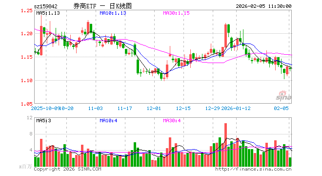 2月5日,截止午间收盘,券商ETF(159842)跌0.53%,报1.123元,成交额2.35亿元。券商ETF(159842)重仓股方面,东方财富截止午盘跌0.52%,中信证券跌0.70%,国泰海通跌0.70%,华泰证券跌0.32%,广发证券跌1.20%,招商证券涨0.12%,东方证券跌0.39%,兴业证券跌0.15%,申万宏源跌0.39%,中金公司跌0.14%。