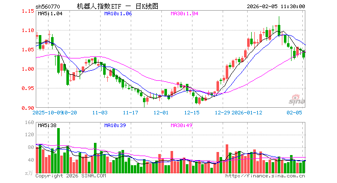 2月5日,截止午间收盘,机器人指数ETF(560770)跌1.81%,报1.028元,成交额3935.71万元。机器人指数ETF(560770)重仓股方面,科大讯飞截止午盘跌1.69%,汇川技术跌2.04%,拓普集团跌2.67%,大华股份跌0.91%,大族激光跌2.96%,双环传动跌2.53%,石头科技涨1.67%,中控技术涨2.00%,绿的谐波跌5.07%,机器人跌1.27%。