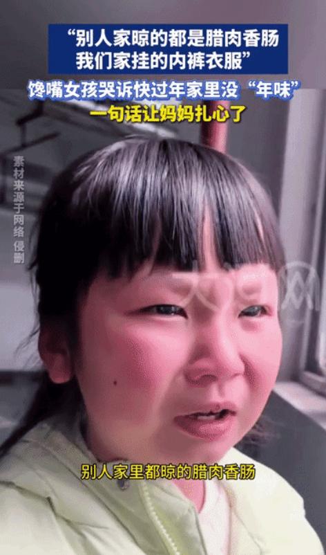 2月2日重庆,临近过年,小女孩突然眼含热泪询问妈妈:“别人家里晾的都是腊肉 香肠,而我们家里挂的却都是衣服,你今年是没挣到钱吗?” 妈妈看着这么馋的女儿忍不住想笑,但还是马上回应道:“你想吃香肠,我们在外边买就行了。” 年关越来越近,街头巷尾的烟火气也越来越浓,家家户户忙着备年货、熏腊味,一串串腊肉香肠挂在屋檐下,成了冬日里最治愈的风景,也藏着中国人刻在骨子里的年味记忆。 这天午后,阳光正好,小女孩跟着妈妈在院子里晾晒衣服,目光却不由自主地飘向了隔壁邻居家的屋檐。 那里整整齐齐挂着一串串腊肉、香肠,色泽红润油亮,在阳光下泛着微光,隐约能闻到淡淡的熏香,那是专属于过年的味道,也是她悄悄惦记了好久的滋味。 看着邻居家的腊味,再低头看看自家晾晒的一排排衣服,小女孩的眼眶慢慢红了,豆大的泪珠在眼眶里打转,憋了好久才鼓起勇气, 带着几分委屈和疑惑看向妈妈,语气里满是稚嫩的认真。她心里暗暗嘀咕,过年就该有腊味,可自家却没有,是不是妈妈没挣到钱,才没法做。 妈妈察觉到女儿的异样,转头就看见她眼含热泪的模样,听完女儿的问话,又气又笑,眼底的温柔藏都藏不住。 她忍不住揉了揉女儿的脑袋,压下嘴角的笑意,连忙安抚,说着可以去外面买香肠,满足她的小馋虫,不想让这份小小的期待落空。 可听到“买外面的”,小女孩立刻皱起了眉头,小脑袋摇得像拨浪鼓,语气坚决地否定了妈妈的提议。 在她心里,外面买的腊味总少点味道,没有烟火气,远不如别人家自己做的地道,就像当下很多人偏爱手工腊味,觉得那是机器加工品无法替代的温情味道。 紧接着,小女孩拉着妈妈的衣角轻轻摇晃,一脸央求,软乎乎的模样让人没法拒绝。她盼着妈妈能亲手做香肠, 不仅能解馋,更想留住这份专属的年味,就像近期不少家庭都会亲子协作做腊味,把对新年的期盼和亲情,都揉进每一寸肉里。 妈妈看着女儿满眼的期盼,终究没忍住答应下来。其实她不是不想做,只是平日里忙于生计,没来得及筹备,手工做腊味工序繁琐,从选肉、腌制到灌肠、晾晒,每一步都要用心, 还要把控好火候和调料,才能做出地道的味道,就像传统腊味制作,讲究慢工出细活,藏着老辈传下的智慧。 第二天,妈妈就特意买了新鲜的猪肉、肠衣和香料,陪着女儿一起忙活起来。母女俩分工协作,妈妈负责切肉、调配腌料, 按照老方法慢慢揉搓,让调料充分渗透,女儿则在一旁帮忙递东西,好奇地盯着每一个步骤,小脸上满是认真,欢声笑语伴着肉香,成了冬日里最暖心的画面。 待香肠灌好、晾晒成型,院子里也飘起了淡淡的肉香,小女孩每天都会跑去查看,眼里满是期待。其实对孩子来说,馋的从来不是腊味本身,而是手工制作里的陪伴与烟火气,是过年独有的仪式感。 就像手工腊味之所以让人偏爱,不仅是口感地道,更藏着家人的牵挂与温情。对此,你们有什么看法,欢迎评论留言~