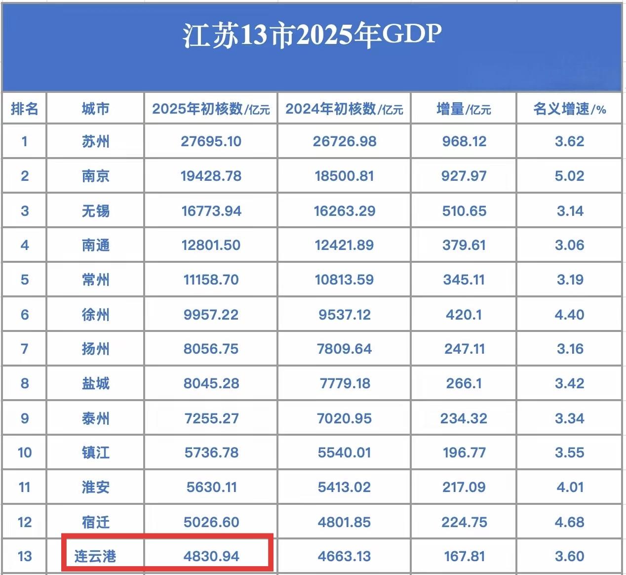 江苏GDP最低的连云港放在广东都能超过珠海排名第六,江苏城市实力强大到令人汗颜。广东就是靠广深硬撑,珠三角和非珠贫富差距太大了。而且就算是珠三角也并不是很富裕,中山市够有名了吧,人均GDP仅9.5万左右,还不到全国平均水平。