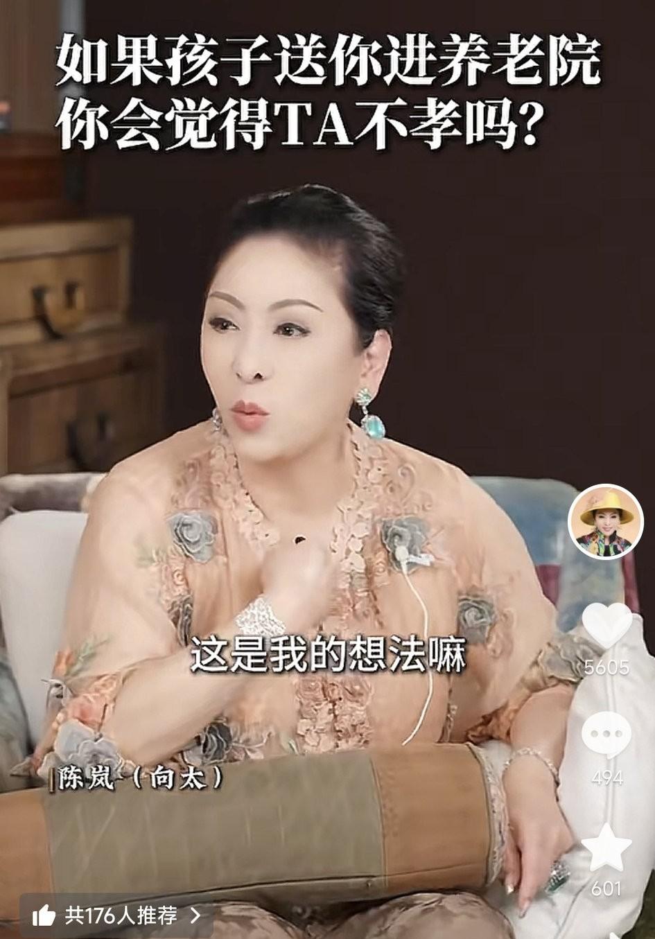 金钱能否替代陪伴呢? 向太:养儿防老”的观念已不符合现在社会。 孩子送父母去养老院不是不孝,孩子愿意花钱让父母在养老院得到妥善照料,这其实是孝顺的表现。因为当下年轻人工作繁忙,可能无力亲自照顾父母,送进养老院能让父母获得专业照护,同时也减轻了年轻人的压力。 向太指出中产阶级大多会自行规划养老,比如准备养老金、养老房产等,不依赖子女。还建议老年人培养爱好,如写字、钓鱼、画画等,既能发现自身天赋,又能结交朋友,避免孤独,甚至有助于预防老年痴呆。 父母应设身处地为子女考虑,理解他们的压力,不要对子女有过多养老指望,这样就不会失望。父母最大的愿望应是孩子健康快乐成长,而非将养老压力全部寄托在子女身上。 我觉得向太说的很对,外婆91岁了,就在养老院。不是不愿意照顾,而是考虑到养老院有完善的医疗设施,年纪大了,随时需要检查身体和调养,路上的颠簸,对老人都没有好处。全天24小时的陪护,理发,洗澡,逗她开心。我们工作之余就会去看她,外婆总是笑眯眯的。等我老了,也去养老院。大家觉得呢?